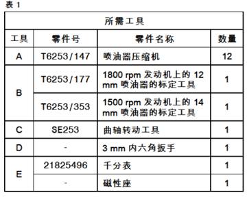 注:調(diào)整三個(gè)或更多噴油器時(shí)則必須調(diào)整發(fā)動(dòng)機(jī)上的所有噴油器。