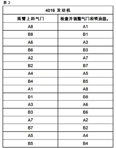 按照表2所示的順序設(shè)置噴油器正時(shí)銷并調(diào)整氣門(mén)間隙。