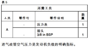 E將步驟4 d的結(jié)果與下述適當數(shù)值相比較。流過發(fā)動機空氣濾清器的空氣不得超過以下量:最大阻力3.71 kPa (149 in H:O2)