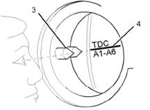 5使用工具(A)旋轉(zhuǎn)曲軸,使飛輪上相應的標記(4)與指針(3)對齊。確保搖臂和連接件之間存在間隙。