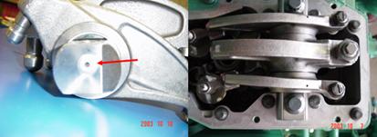 要保證康明斯Cummins QSK23發(fā)動(dòng)機(jī)搖臂軸的正常潤(rùn)滑, 搖臂軸有鉚釘?shù)囊粋?cè)必須朝向發(fā)動(dòng)機(jī)前端并且螺栓孔大的一 面朝下。