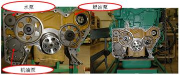 康明斯Cummins QSK23發(fā)動(dòng)機(jī)機(jī)油泵和水泵裝載發(fā)動(dòng)機(jī)的右側(cè)由曲軸前端通過一個(gè)惰齒輪驅(qū)動(dòng)。