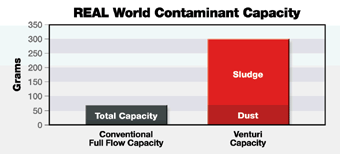 潤滑油中污染物積聚后所產(chǎn)生的油泥會(huì)導(dǎo)致發(fā)動(dòng)機(jī)磨損極速加劇。 而在實(shí)驗(yàn)室以外的實(shí)際環(huán)境中,油泥將是最常見的大敵。 康明斯濾清系統(tǒng)已通過實(shí)際環(huán)境中的測試,而非簡單的臺(tái)架測試證實(shí) Venturi™ 組合的旁通多層疊片可有效清除有害油泥,并使?jié)櫥拖到y(tǒng)獲得比僅使用全流量合成濾清器時(shí)更高的過濾效率。 事實(shí)上,Venturi™ 組合的去污能力可達(dá)單獨(dú)的全流量合成濾清器的三倍。