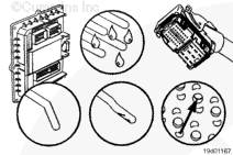信號導(dǎo)線電阻 — 檢查:將測試導(dǎo)線插入發(fā)動機線束接頭的觸針 87。將鱷魚夾與萬用表表筆相連。將萬用表的另一支表筆接觸線束側(cè)燃油含水傳感器觸針 B 。測量電阻。萬用表 必須顯示為閉路(10 歐姆或更?。H绻麥y量值大于 10 歐姆,則信號電源導(dǎo)線中存在開路。維修導(dǎo)線,或更換 OEM 線束。