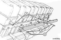 用 lubriplate 將 O 形密封圈 (1) 固定在歧管上的沉孔中。將 O 形密封圈安裝在機(jī)油歧管上。每個(gè)搖臂室需要一個(gè)密封圈。
