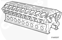 缸體的干重為 1,280 kg [2,822 lb]。缸體配備的加強(qiáng)板可提供更高的強(qiáng)度和剛度。缸套擴(kuò)孔突起,可改善在活塞頂部行程時(shí)冷卻液流向活塞環(huán)的效率。