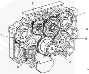 正時(shí)方法類似于 康明斯QSK60 發(fā)動(dòng)機(jī)。注意康明斯QSK78 獨(dú)特的內(nèi)側(cè)正時(shí)位置。