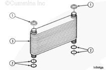 從康明斯QSK45 發(fā)動機上拆下 3 個機油冷卻器芯 (2) 或從 QSK60 發(fā)動機上拆下 4 個機油冷卻器芯 (2)。從每個冷卻器芯 (2) 上拆下 4 個 O 形密封圈 (1),并將其廢棄。