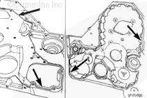 將兩個(gè)導(dǎo)向銷(零件號(hào) 3376488)安裝進(jìn)缸體的齒輪室殼體端。