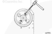 如有必要,轉(zhuǎn)動凸輪軸以便凸輪軸上的孔能夠接近止推板上的螺紋孔。安裝兩個螺栓和鎖定板。扭矩值: 45 n.m [33 ft-lb]