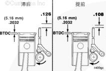使用偏移鍵可以在齒輪系正時保持不變的前提下,使凸輪軸輪廓略微偏轉(zhuǎn)。偏移鍵的頂部沿凸輪軸正常的旋轉(zhuǎn)方向偏轉(zhuǎn)越多,噴油正時延遲程度就越大。推桿行程數(shù)值將增加。