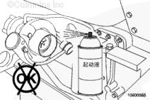 不要在這種發(fā)動(dòng)機(jī)中使用起動(dòng)液。使用起動(dòng)液可能導(dǎo)致爆炸、火災(zāi)、人身傷害、發(fā)動(dòng)機(jī)嚴(yán)重?fù)p壞和財(cái)產(chǎn)損失。