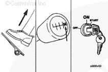 注: 對于配備有 Prelub 系統(tǒng)的發(fā)動(dòng)機(jī),將鍵固定在”START”(起動(dòng))位置以增大機(jī)油壓力。