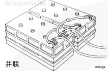 插圖所示為一種典型的蓄電池并聯(lián)連接。這種連接使發(fā)動(dòng)機(jī)得到雙倍的起動(dòng)電流。