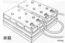 插圖所示為一種典型的蓄電池串聯(lián)連接。這種連接中,正極 (+) 和負(fù)極 (-) 相接,可以得到雙倍的電壓。