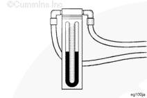 要測試空-空中冷器有無過度的堵塞情況,則需將壓力計的一端安裝到進氣歧管中,將另一端安裝到渦輪增壓器壓縮機出口中。以最大功率 (rpm) 和負載運轉(zhuǎn)發(fā)動機。觀察壓力計(零件號 3824718)或等同物,如果壓差高于 13.5 kPa [2 psi],則檢查空-空中冷器和管路有無內(nèi)部堵塞。如有必要,維修或更換。請參考本服務(wù)公告中的“空-空中冷器系統(tǒng)的清潔和檢查”。