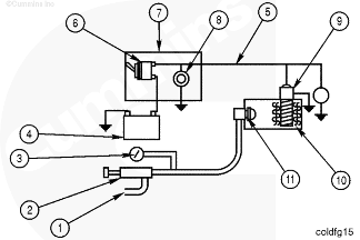準(zhǔn)備康明斯起動(dòng)發(fā)動(dòng)機(jī),檢查燃油供給、冷卻液液位、變速箱或動(dòng)力輸出裝置是否位于空檔,確定所有的手都接觸不到發(fā)動(dòng)機(jī)。關(guān)閉預(yù)熱塞開關(guān)。(紅色指示燈會(huì)熄滅。)20 到 30 秒(預(yù)熱塞加熱所需時(shí)間)后,操作加注泵,起動(dòng)發(fā)動(dòng)機(jī)過程中保持 241 kPa [35 psi] 的燃油壓力。在低于 -34° C [-30°F] 的溫度下需要使用稍高的噴嘴壓力,因?yàn)槿加透?。如有疑問,試起?dòng)之前先試用噴嘴。發(fā)動(dòng)機(jī)起動(dòng)前一般先轉(zhuǎn)幾圈。