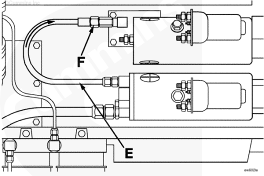 大型吸油軟管將油底殼集油槽與預(yù)潤滑泵相連接。為了實(shí)現(xiàn)這個目的,在新 K38 和 K50 油底殼上增加一個附加端口。改型安裝時使用離泵最近的機(jī)油加熱器端口。絕不要利用機(jī)油排油端口進(jìn)行改型安裝。吸油軟管長度不應(yīng)超過 1422 mm [56 in] 長。軟管需要使用卡箍,以避免磨損和過大的振動。