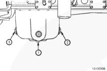 如果換油吸油裝置固定在油底殼的起動馬達(dá)側(cè)的側(cè)面排油出口 (2) 上,則必須將其移動到另一側(cè)的排油口 (3)。