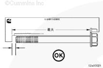 如果厚度大于 0.09 mm [0.004 in] 的塞尺能插入直尺與缸蓋之間,則必須對缸蓋進(jìn)行再加工。