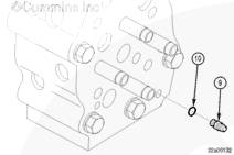 將密封墊圈 (10) 和管嘴 (9) 安裝進(jìn)缸蓋的冷卻液排氣口。