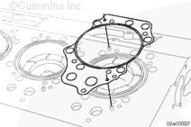 注: 圖示的 QST30 缸蓋使用了 5 個(gè)卡箍和堵塞總成,而其他型號的缸蓋僅使用了其中 4 個(gè)較長的總成。