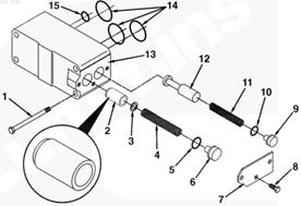 1六角頭螺栓 - 4 - M10 x 1.50 x 90,2旁通閥柱塞 – 1,3墊片 – 1,4閥彈簧 – 1,5 O 形密封圈 – 1,6固定塞 – 1,7蓋板 – 1,8六角頭螺栓 - 3 - M8 x 1.25 x 12,9固定塞 – 1,10 O 形密封圈 – 1,11壓縮彈簧 – 1,12壓力調(diào)節(jié)器閥 – 1,13旁通閥閥體 – 1,14 O 形密封圈 – 3,15 O 形密封圈 - 1。