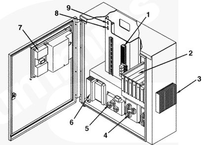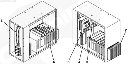 1 TB3,2燃油系統(tǒng)電路板散熱器,3 PT/CT電路板,4電壓調(diào)節(jié)器輸出模塊,5總線PT模塊,6插件箱。