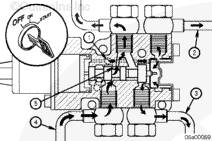 當(dāng)鑰匙開關(guān)斷開時(shí),Bosch® EHAB 裝置斷開,滑閥向相反方向移動(dòng)。這樣可以防止燃油流入噴油泵油道并同時(shí)打開一條通路,使輸油泵將燃油從油道泵出并送回油箱。油道溢流口,燃油溢流,燃油從油道流至輸油泵,已過濾燃油流入,已過濾燃油返回油箱進(jìn)口,