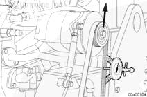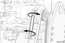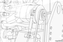 轉(zhuǎn)動調(diào)節(jié)桿以解除皮帶張力。拆下充電機(jī)皮帶。參考步驟 013-005。