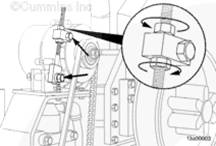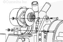 順時針轉(zhuǎn)動調(diào)整螺釘以張緊皮帶。擰緊皮帶。參考驅(qū)動皮帶張力 013-005。使用(Burroughs)皮帶張力規(guī)測量皮帶張力。 QST30 發(fā)動機(jī)使用 5 肋 K 形皮帶。