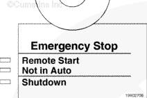 遠(yuǎn)程起動(dòng)或停機(jī)按鈕用于從遠(yuǎn)程位置的發(fā)電機(jī)組起動(dòng)和停機(jī)。當(dāng)發(fā)電機(jī)組工作時(shí),此按鈕顯示為停機(jī) (STOP);當(dāng)發(fā)電機(jī)組沒(méi)有工作時(shí),此按鈕顯示為起動(dòng) (START)。