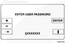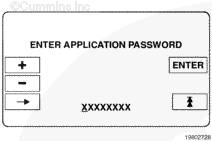 按下正號(hào)(+)和負(fù)號(hào)(-)按鈕選擇密碼的第一個(gè)字符。輸入應(yīng)用程序密碼設(shè)置子菜單,或輸入用戶密碼調(diào)整子菜單。