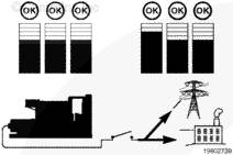 同步檢查(容許)功能在自動(dòng)和手動(dòng)運(yùn)行模式下都可以工作??刂葡到y(tǒng)將確保發(fā)電機(jī)組處于正確電壓,在規(guī)定的時(shí)間段中保持在規(guī)定的同步檢查窗口內(nèi),以及相位旋轉(zhuǎn)正確。