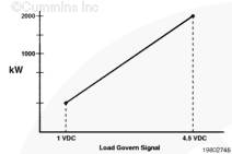 當(dāng)負(fù)載調(diào)速信號(hào)在 1 VDC 和 4.5 VDC 之間,控制系統(tǒng)將按照 kW 基準(zhǔn)和負(fù)載調(diào)速信號(hào)之間的線性關(guān)系確定的負(fù)載水平運(yùn)轉(zhuǎn)發(fā)電機(jī)組。