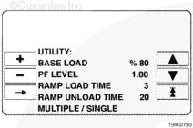 基本負(fù)載 (%) 控制發(fā)電機(jī)組與公用電網(wǎng)(干線)并聯(lián)運(yùn)轉(zhuǎn)時(shí)的最大 kW 負(fù)載水平。顯示的數(shù)值表明發(fā)電機(jī)穩(wěn)態(tài)負(fù)載在發(fā)電機(jī)組備載規(guī)格中所占的百分比。在超出發(fā)電機(jī)組規(guī)格的負(fù)載水平下長(zhǎng)期運(yùn)行可能會(huì)造成發(fā)動(dòng)機(jī)異常磨損或過(guò)早損壞。