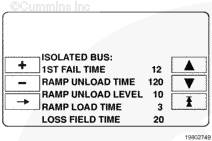 減速卸載水平:負(fù)載要求減速卸載功能將使負(fù)載在斷開(kāi)電路斷路器前從發(fā)電機(jī)組現(xiàn)在的水平逐漸降低至此水平。顯示的數(shù)值是發(fā)電機(jī)組備載功率的百分比。