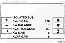 kW 平衡:此功能調(diào)整發(fā)電機(jī)組的 kW 負(fù)載分配功能。在調(diào)整此項(xiàng)數(shù)值前,應(yīng)進(jìn)行所有發(fā)電機(jī)組的標(biāo)定。如果系統(tǒng)上的總負(fù)載沒(méi)有按比例分配,可以利用 kW 平衡調(diào)整發(fā)電機(jī)組,達(dá)到更精確的負(fù)載分配。增大 kW 平衡的數(shù)值將使發(fā)電機(jī)組降低本臺(tái)發(fā)電機(jī)組占總 kW 負(fù)載的百分比。
