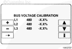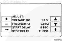 設(shè)置和調(diào)整子菜單允許標(biāo)定圖形顯示器上的計(jì)量?jī)x表,并可以調(diào)整系統(tǒng)參數(shù)和用戶定義的故障代碼、發(fā)電機(jī)組的電壓/頻率以及并聯(lián)應(yīng)用類型。設(shè)置和調(diào)整子菜單只能由合格的技術(shù)人員進(jìn)行修改。