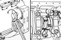 利用盤車工具轉(zhuǎn)動(dòng)發(fā)動(dòng)機(jī)至少兩圈;然后檢查缸套是否損壞。如果出現(xiàn)損壞,拆下活塞并檢查活塞環(huán)。如有必要,進(jìn)行更換。