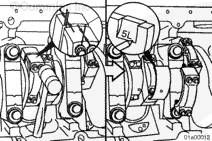 連桿的軸瓦定位舌側(cè)(左排和右排連桿)必須朝向左排凸輪軸,否則可能會(huì)出現(xiàn)曲軸或連桿損壞。