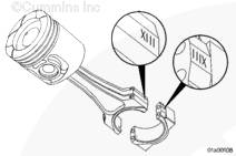 在連桿和與其相配的連桿蓋上蝕刻有唯一號(hào)碼(不是缸號(hào))。當(dāng)把連桿和連桿蓋裝到發(fā)動(dòng)機(jī)上時(shí),連桿和連桿蓋上的號(hào)碼必須相符,并安裝在發(fā)動(dòng)機(jī)的同一側(cè)。