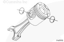 使用活塞環(huán)擴(kuò)張器(零件號(hào) 3823871)拆卸活塞環(huán)。在活塞環(huán)上配一標(biāo)簽,在標(biāo)簽上記錄活塞所屬的氣缸號(hào)。