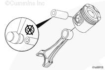 使用兩根 11-mm 尼龍連桿導(dǎo)向銷(零件號(hào) 3163363)。安裝導(dǎo)向銷可防止連桿掉落,損壞其它發(fā)動(dòng)機(jī)零件。