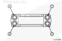 用清潔的 15W-40 機(jī)油潤(rùn)滑連桿螺栓的螺紋和墊圈。安裝連桿蓋、螺栓和墊圈。先用手?jǐn)Q緊所有螺栓。