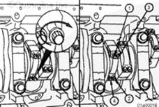 連桿和連桿蓋朝向左排凸輪軸的一側(cè)必須標(biāo)有缸號(hào)。檢查連桿的標(biāo)記是否正確。使用鋼印標(biāo)記未正確標(biāo)記的所有連桿。