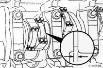 注: 核實(shí)軸瓦上的所有機(jī)油孔都與連桿上的孔對(duì)準(zhǔn)。