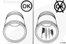 不要用砂布或砂紙去除氣缸套上的積碳。砂布或砂紙中的氧化鋁或硅顆粒會(huì)造成嚴(yán)重的發(fā)動(dòng)機(jī)損壞。不要在活塞環(huán)行程區(qū)域使用研磨劑。否則會(huì)損壞缸套。