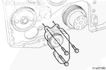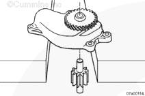 如果從軸上拆下主泵驅(qū)動齒輪,支撐驅(qū)動齒輪,使用手扳壓機將軸推過齒輪至規(guī)定位置。