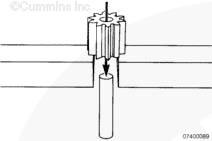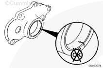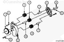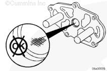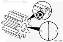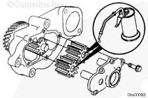 通過緩慢轉(zhuǎn)動驅(qū)動齒輪和檢查泵齒輪是否損壞來檢查機油泵能否繼續(xù)使用。如果機油泵內(nèi)有零件損壞,則此泵必須大修或更換。有關大修的詳細信息,請參考《 QST30 大修手冊》(公告號 3666190)中的第 7 節(jié)。